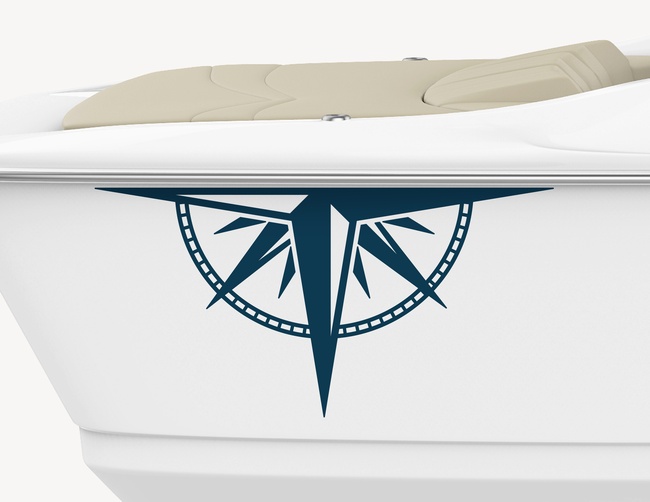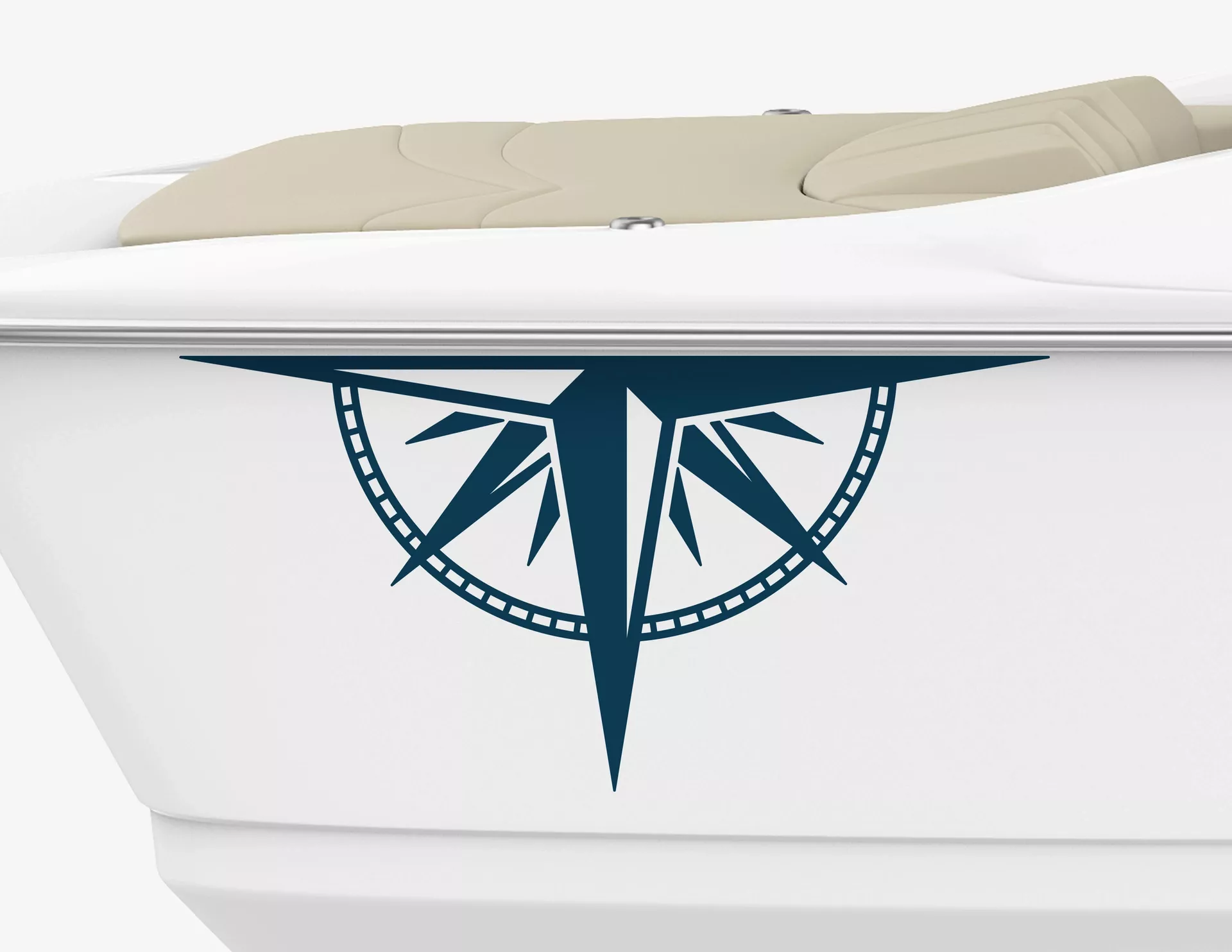 Verstreut in alle Himmelsrichtungen – Bootsaufkleber Split Compass. Eine präzise Navigation ist entscheidend, besonders auf den Wasserwegen. Früher orientierte man sich an Sonne und Sternen, später kam der Kompass zum Einsatz. Heute gibt es hochmoderne Navigation mit Radar und Satelliten. In der Nautik wird aber großen Wert auf Traditionen gelegt, weshalb sich diese angeschnittene Windrose perfekt als Dekoration für Boote eignet. So wird der Kreis geschlossen zwischen der modernen Schifffahrt und einer altbewährten Navigationsmethode.