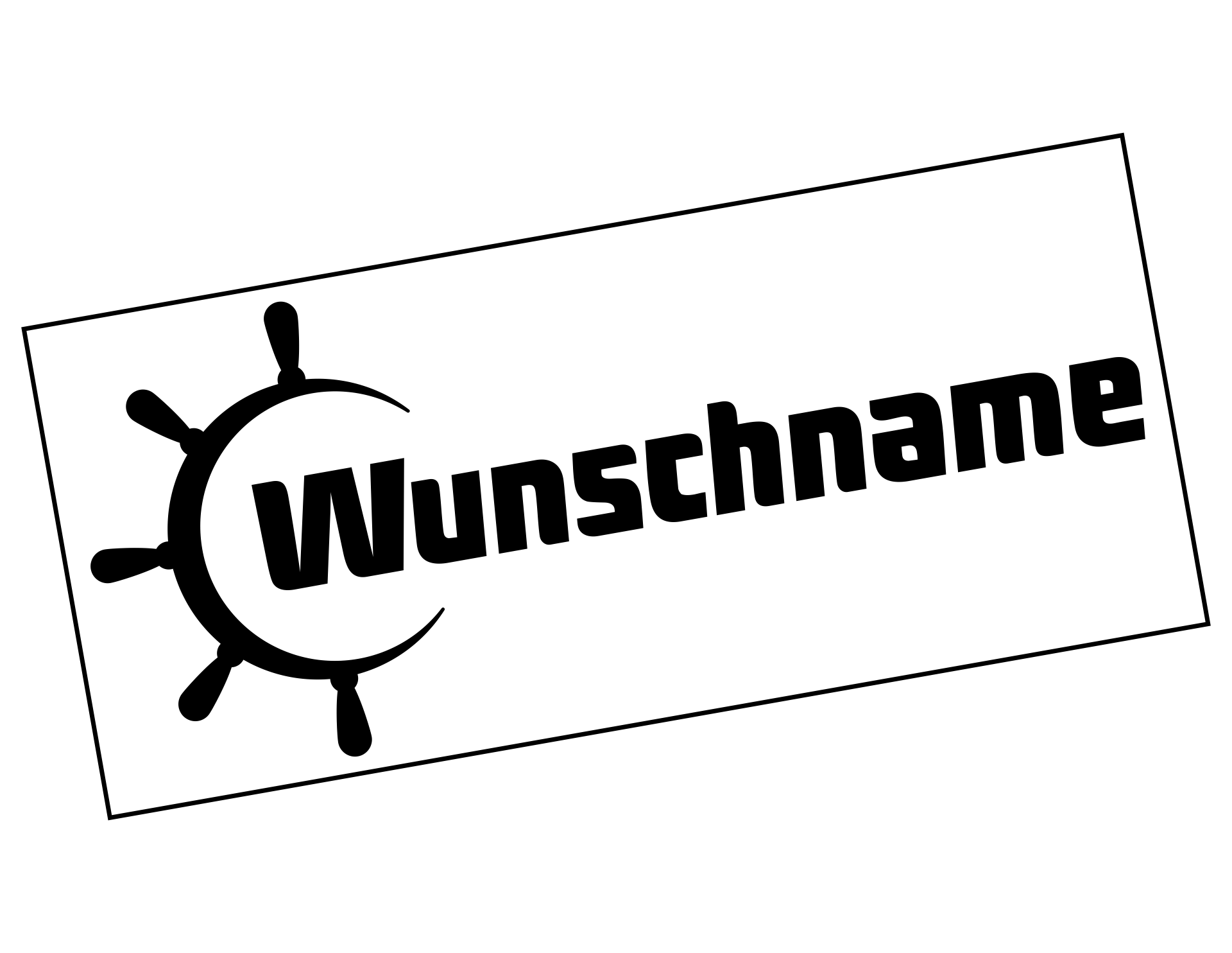 Bootsaufkleber "Steuerrad der Sehnsucht": Ein Design im Logo-Stil samt Steuerrad-Symbol und Wunschnamen – ideal für passionierte Segler, Wassersportler und Fans der Nautik.
