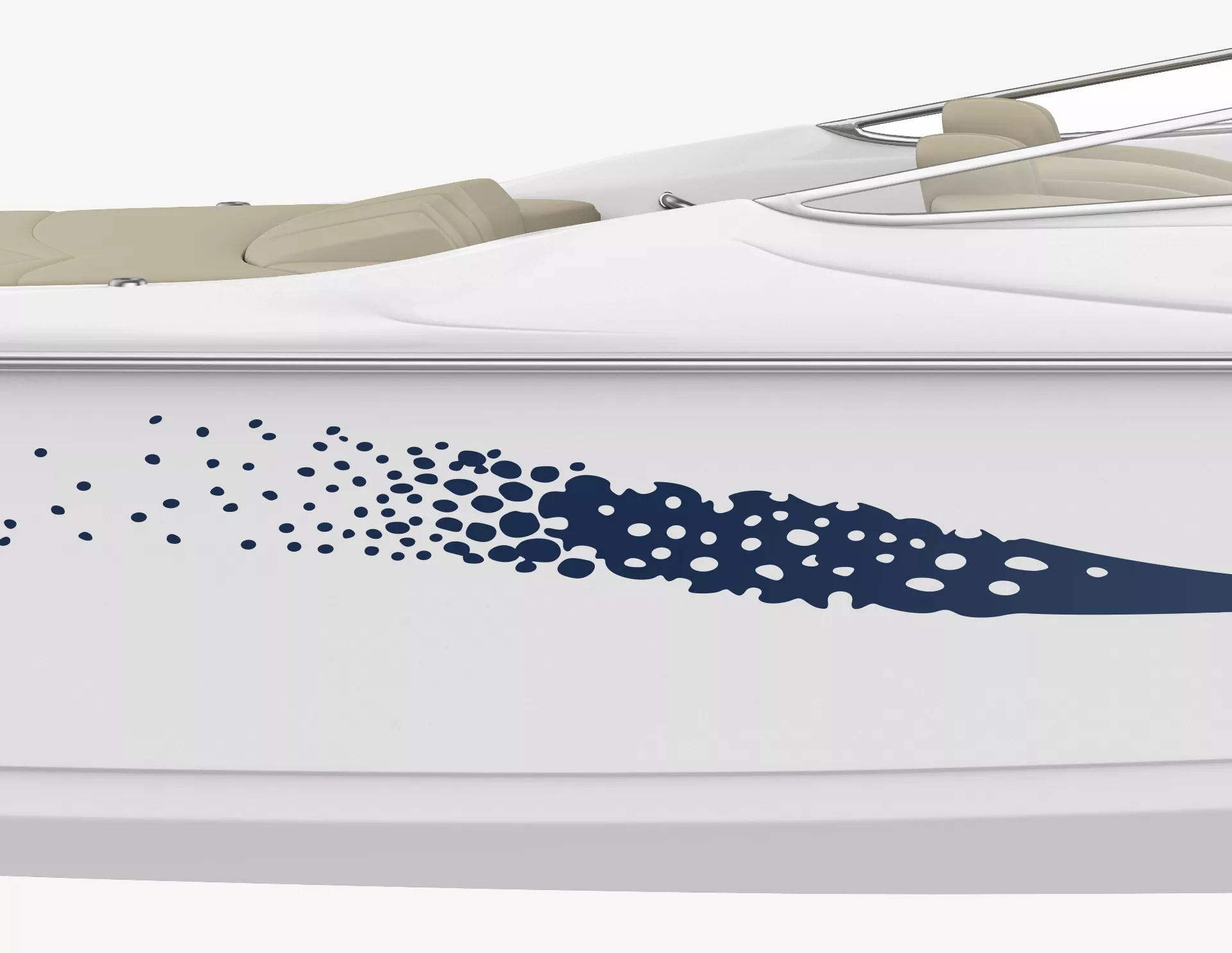 Die perfekte Welle: Bootsaufkleber Surf Liner macht Dein Leben bunter, für einen ganz individuellen und frischen Look in Deiner Wunsch-Farbe und Größe. Der geschwungene Zierstreifen besticht durch einen eleganten Verlauf von angedeuteten Wasserspritzern: Ein Design wie gemacht für den Wassersport und blasse Boots-Flanken.