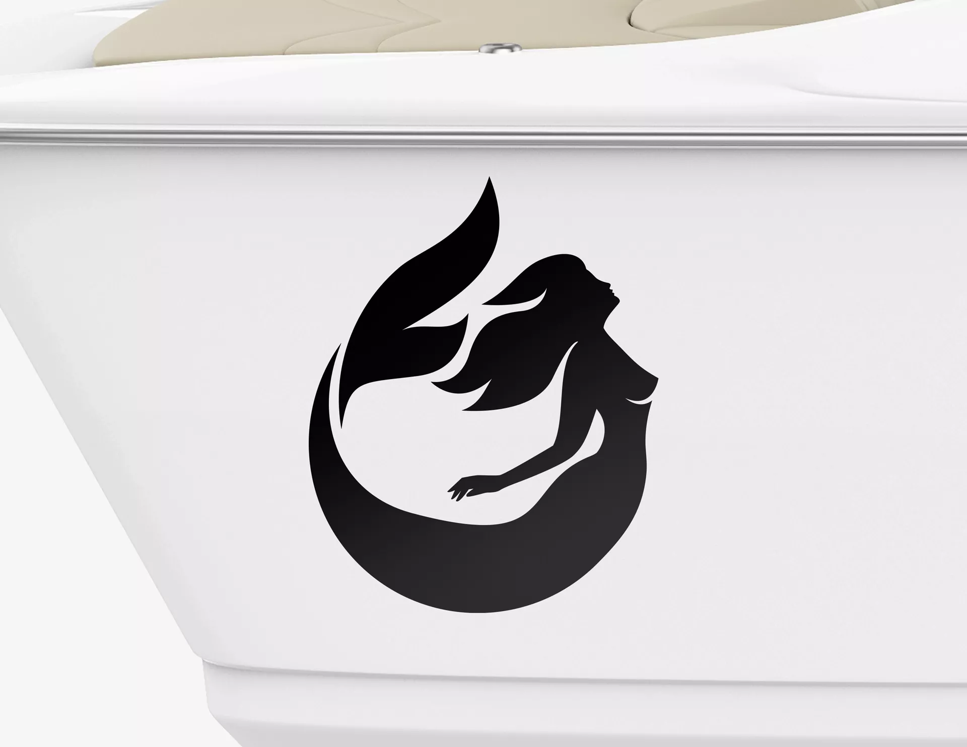 Flotte Nixe: Weibliche Kurven, eleganter Fischschwanz und bezaubernd schön – kein Wunder, das der Hype um dieses Fabelwesen niemals abebbt. Bootsaufkleber Tanz der Meerjungfrau; als Emblem für Dein Boot und magische Momente auf See.