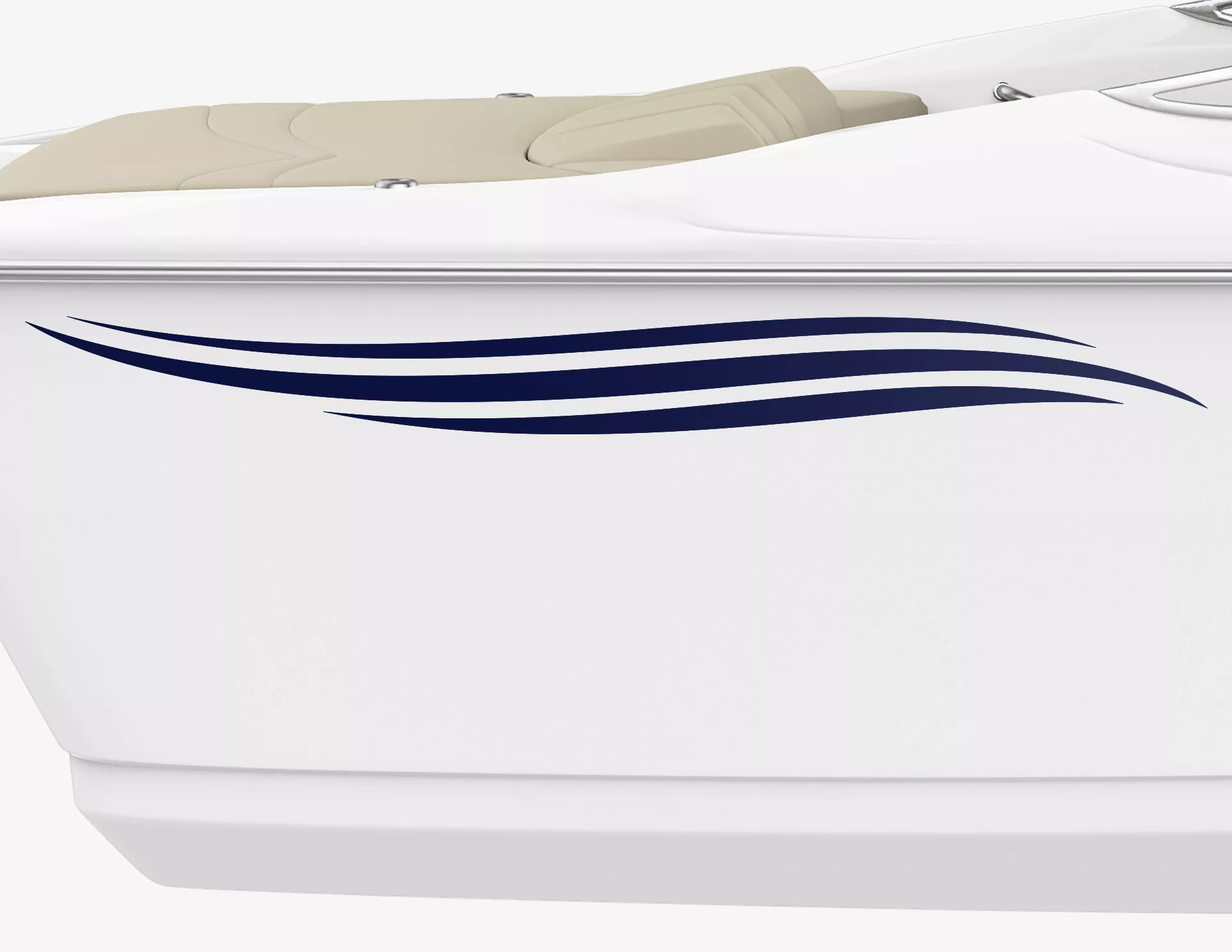 Schönes Trio: Bootsaufkleber Triple Wave mit 3 geschwungenen Linien, zusammen als langer Wellen-Streifen – ein schöner maritimer Akzent in Deiner Wunsch-Farbe und Größe.