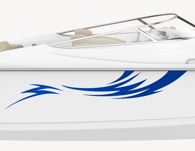 Ein ausgesprochen cooles Design – denn das dynamische Muster vom Bootsaufkleber Wiggle Wave erinnert an einen abstrakten, wackelnden Fischschwanz kurz bevor er in den Wellen verschwindet …oder war es doch eine Meerjungfrau die da gerade ins kühle Wasser abgetaucht ist?