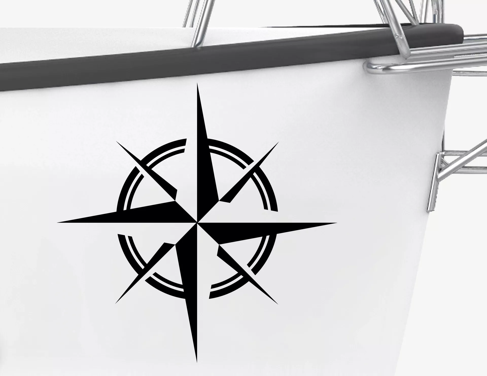 Dieses klassische Kompass-Design zum Aufkleben gibt viel Inspiration und natürlich ein schönes optisches Detail für jedes Boot – Bootsaufkleber "Windrose klassisch".