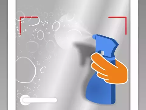 Klebefläche und auch den Untergrund vollständig mit einem Wasser-Spülmittel-Gemisch (3 Tropfen Spüli auf 1L Wasser) besprühen.