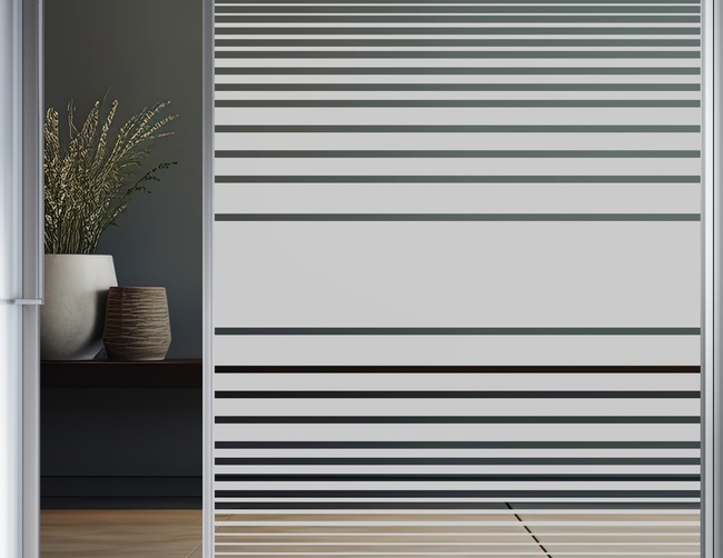 Mit ihrem exquisiten Muster aus undurchsichtigen horizontalen Streifen bringt die Fensterfolie Line-Out Deine Fenster und Glaswände hervorragend zur Geltung.