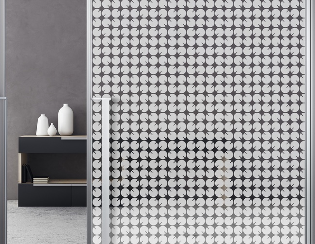 Milchglasfolien mit Mustern bieten einen eingeschränkten Sichtschutz. Ein cleverer Kompromiss aus Durchsicht und Diskretion. Es entsteht eine Art Gardineneffekt. Bei nahem Abstand kann man durch die Muster hindurchsehen. Bei mittleren und großen Abständen entsteht eine angenehme Privatsphäre.