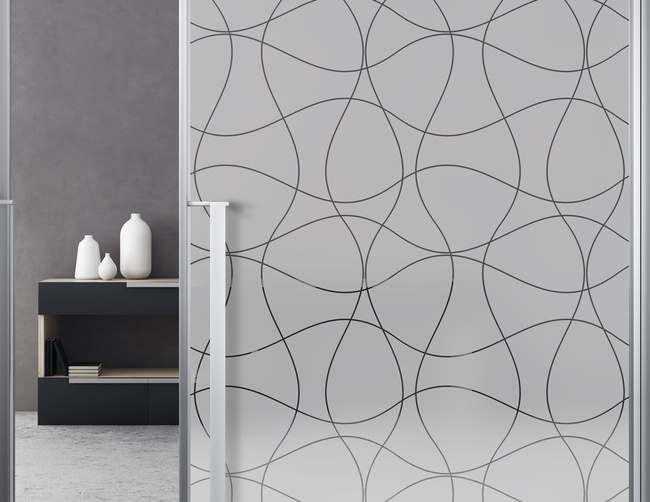Milchglasfolien mit Mustern bieten einen eingeschränkten Sichtschutz. Ein cleverer Kompromiss aus Durchsicht und Diskretion. Es entsteht eine Art Gardineneffekt. Bei nahem Abstand kann man durch die Muster hindurchsehen. Bei mittleren und großen Abständen entsteht eine angenehme Privatsphäre.