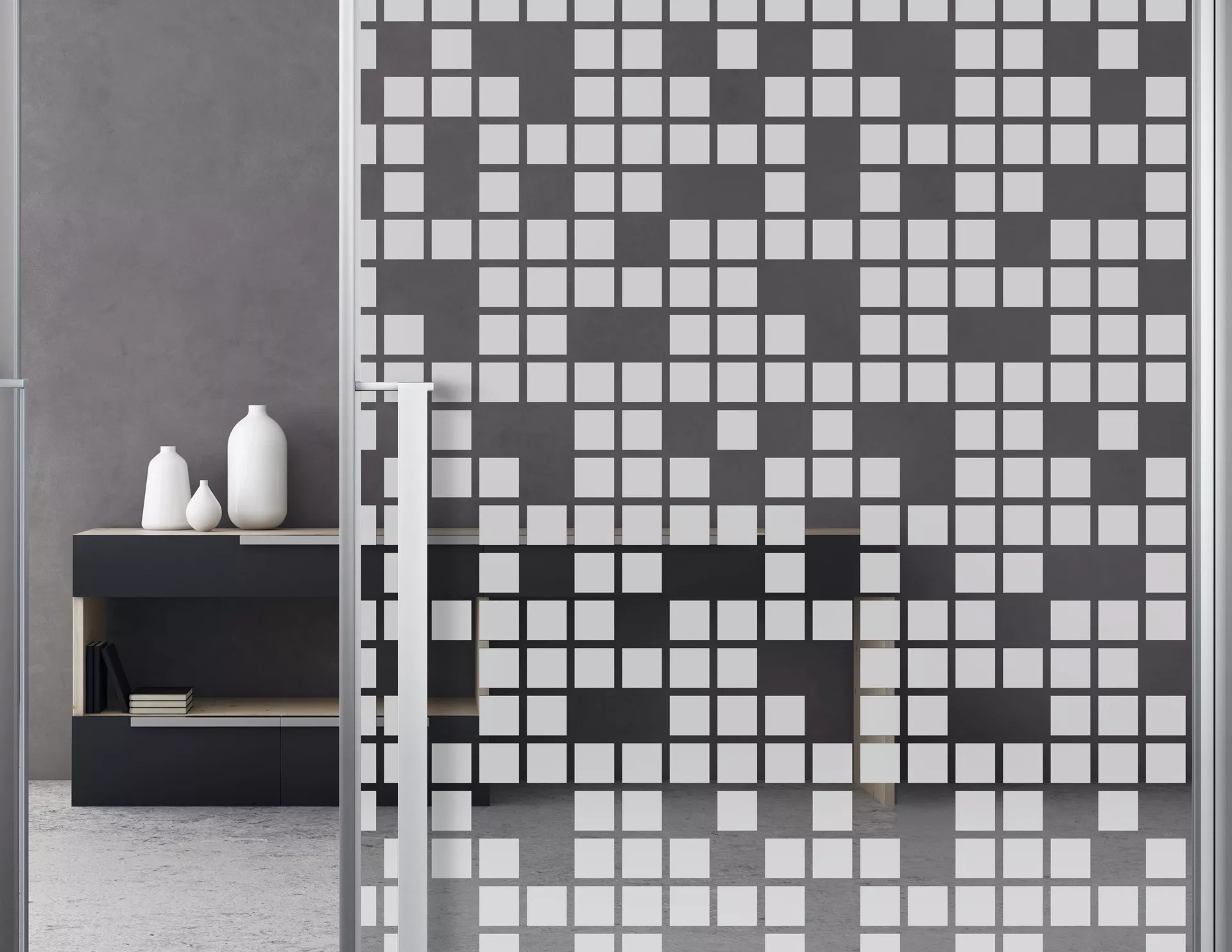 Schön verpixelt! Die vielen Quadrate der Milchglasfolie „Pixel Dust“ wurden scheinbar kräftig durchgewürfelt, um dieses willkürlich wirkende Muster zu erzeugen. Ein Anblick reicht und wir fühlen uns gleich an große Bildpunkte, Minesweeper, Tetris oder unser letztes Kreuzworträtsel erinnert. Ein inspirierend-verspieltes Dekor aus der Welt der Geometrie, welches Privatsphäre schafft und gezielte Blicke durch ein Labyrinth aus Quadern und Hohlräumen lenkt.