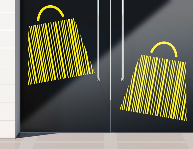 Entdecke den Barcode Bags Aufkleber bei Klebefisch.de – hochwertiger Folien-Plott mit modernem Design. Perfekt für Schaufenster und kreative Rabattaktionen im Einzelhandel!