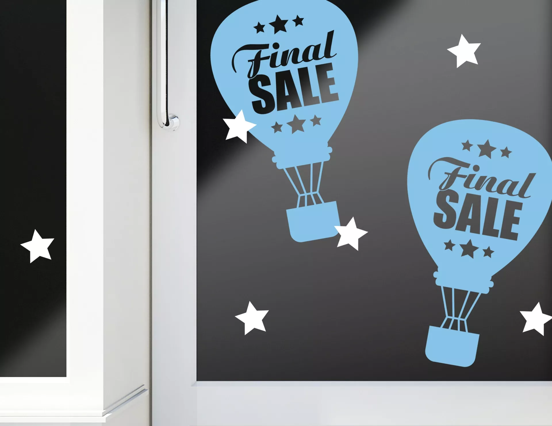 Entdecke den Final Sale Heißluftballon Aufkleber bei Klebefisch.de – hochwertiger Folien-Plott mit kreativem Design. Perfekt für Schaufenster und Schlussverkäufe!
