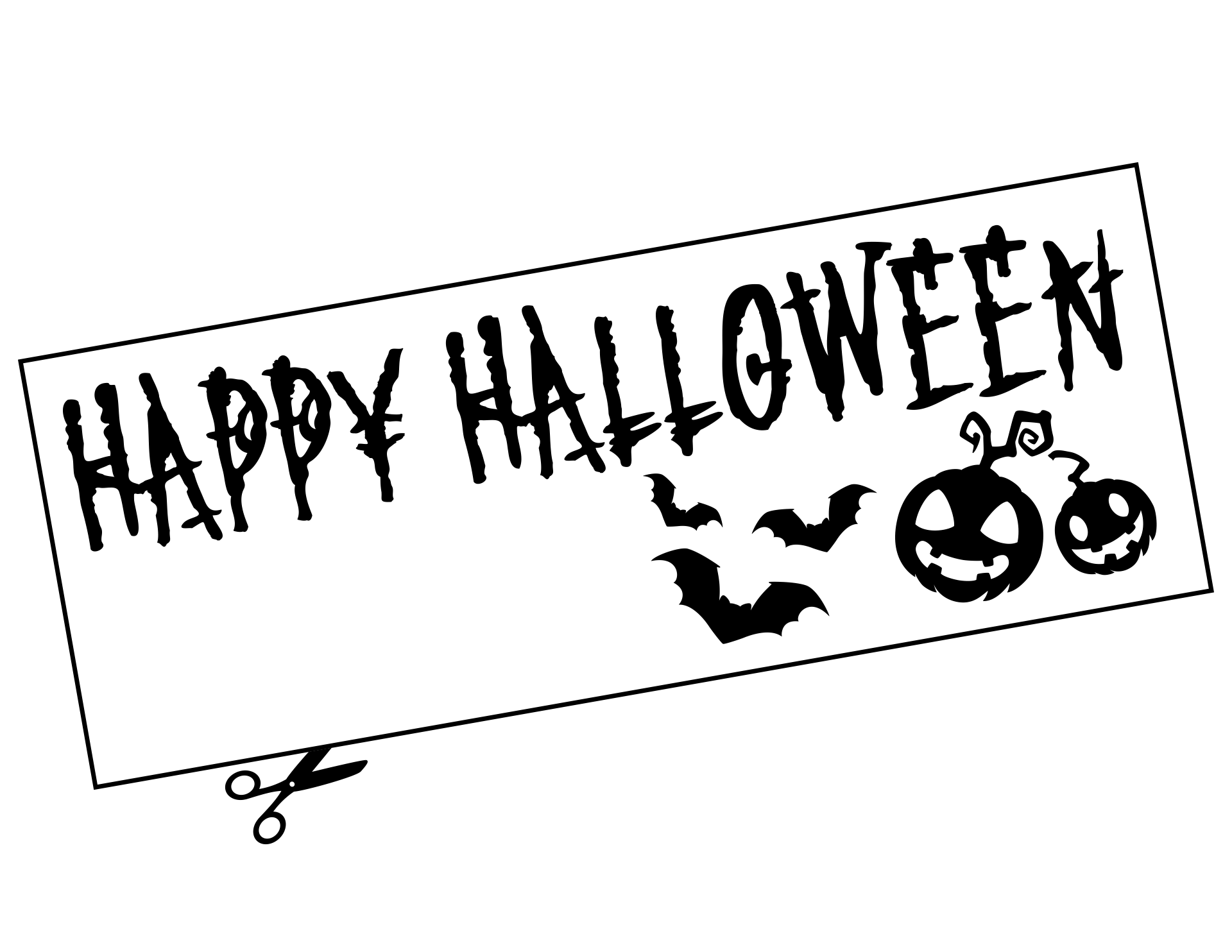 Trick or Treat: Aufkleber Happy Halloween für eine schaurig-schöne Dekoration zum Día de los Muertos mit Schriftzug, einem Kürbis-Duo und Fledermaus-Trio.