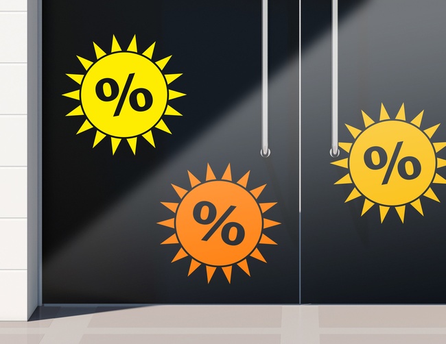 Entdecke den Prozente Sommer Aufkleber bei Klebefisch.de – hochwertiger Folien-Plott mit sommerlichem Design. Perfekt für Schaufenster und saisonale Rabattaktionen!