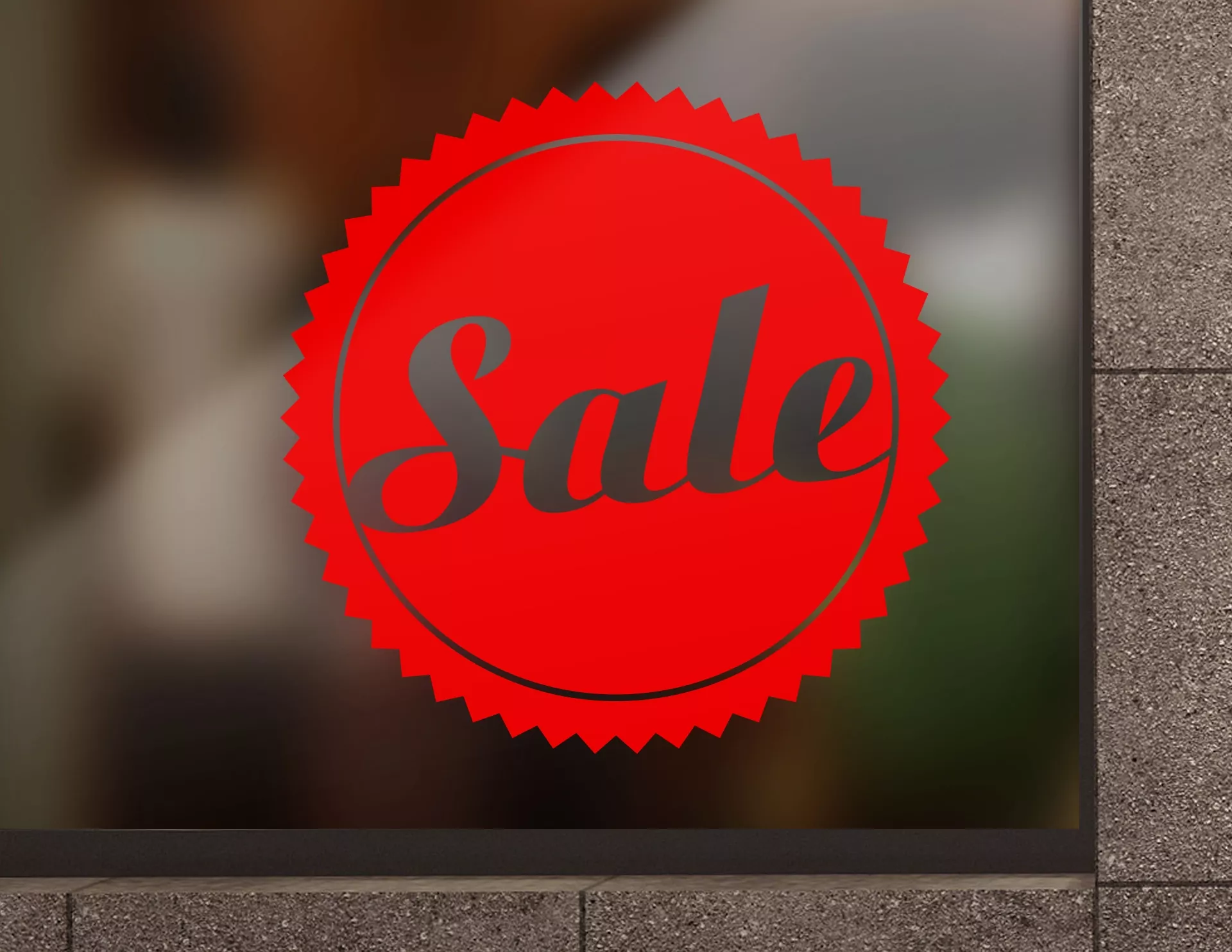 Sale Aufkleber eignen sich für Außen- und Innenbereich und verzieren Schaufenster, glatte Flächen, Schilder und Fahrzeuge. So kann Deine Firma auch im nächsten Schlussverkauf bei Deinen Kunden punkten. Mit unseren Sale Aufkleber laufen Prozente und Aktionstage nicht ins Leere und Dein Laden bekommt eine extra Portion Aufmerksamkeit. Egal ob Lagerverkauf, Geschäftsaufgabe oder Neueröffnung: Dein Schaufenster wird garantiert zur professionellen Werbefläche! Marketing kann so einfach sein!