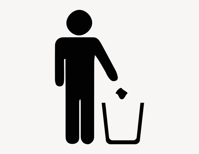 Der Aufkleber mit dem Symbol "Abfall" dient der Orientierung für Jedermann und hilft nachhaltig Ordnung zu schaffen.