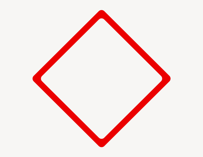 Rotes Quadrat das auf der Spitze steht, "Achtung Raute", als Aufkleber für den individuellen Gebrauch.
