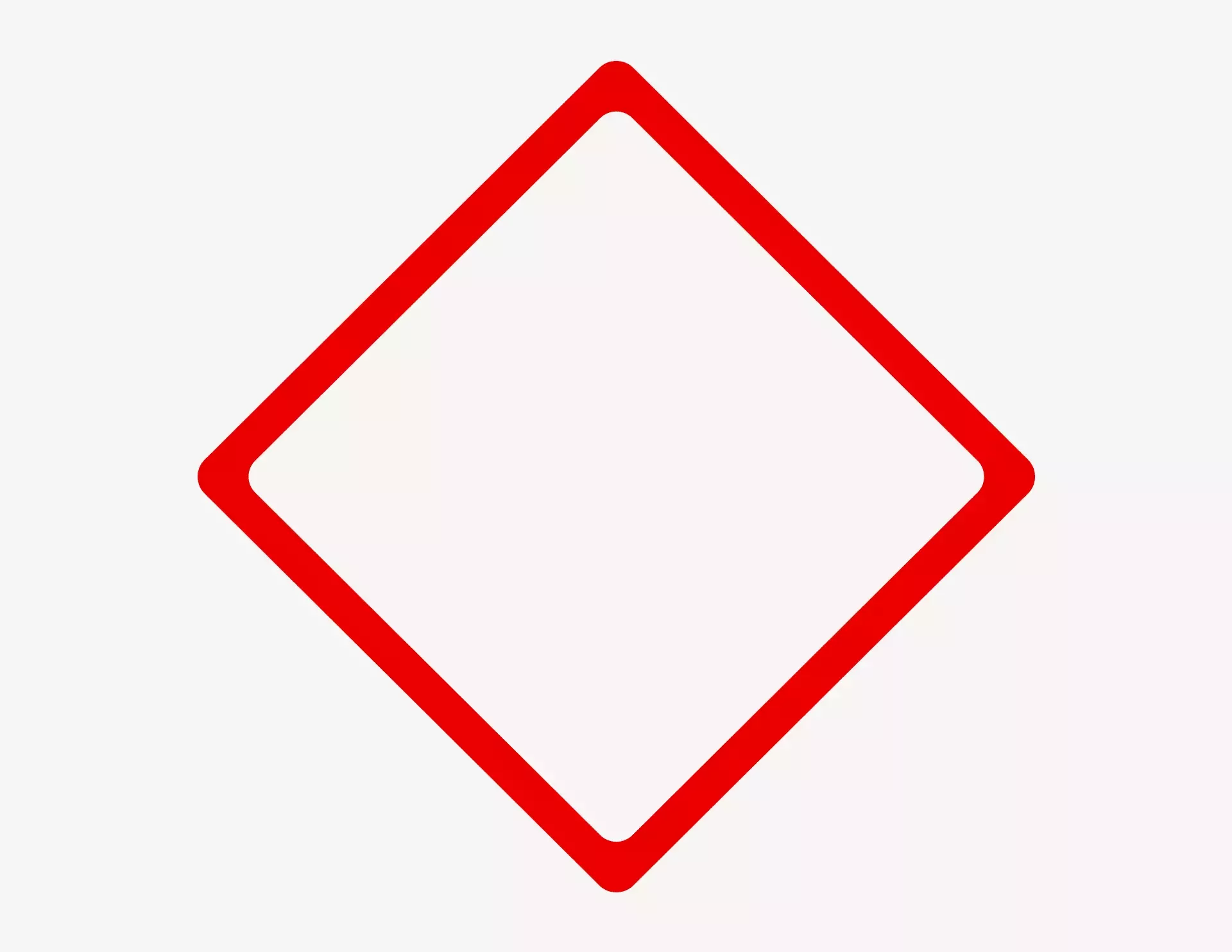 Rotes Quadrat das auf der Spitze steht, "Achtung Raute", als Aufkleber für den individuellen Gebrauch.