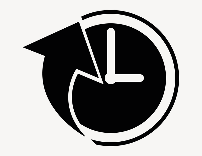 Aufkleber "Pfeil und Uhr": Zeichen im Piktogramm-Stil. Ideal als Ergänzung für alle Zeitangaben, zum Beispiel Öffnungszeiten, Pausenzeiten und vieles mehr.