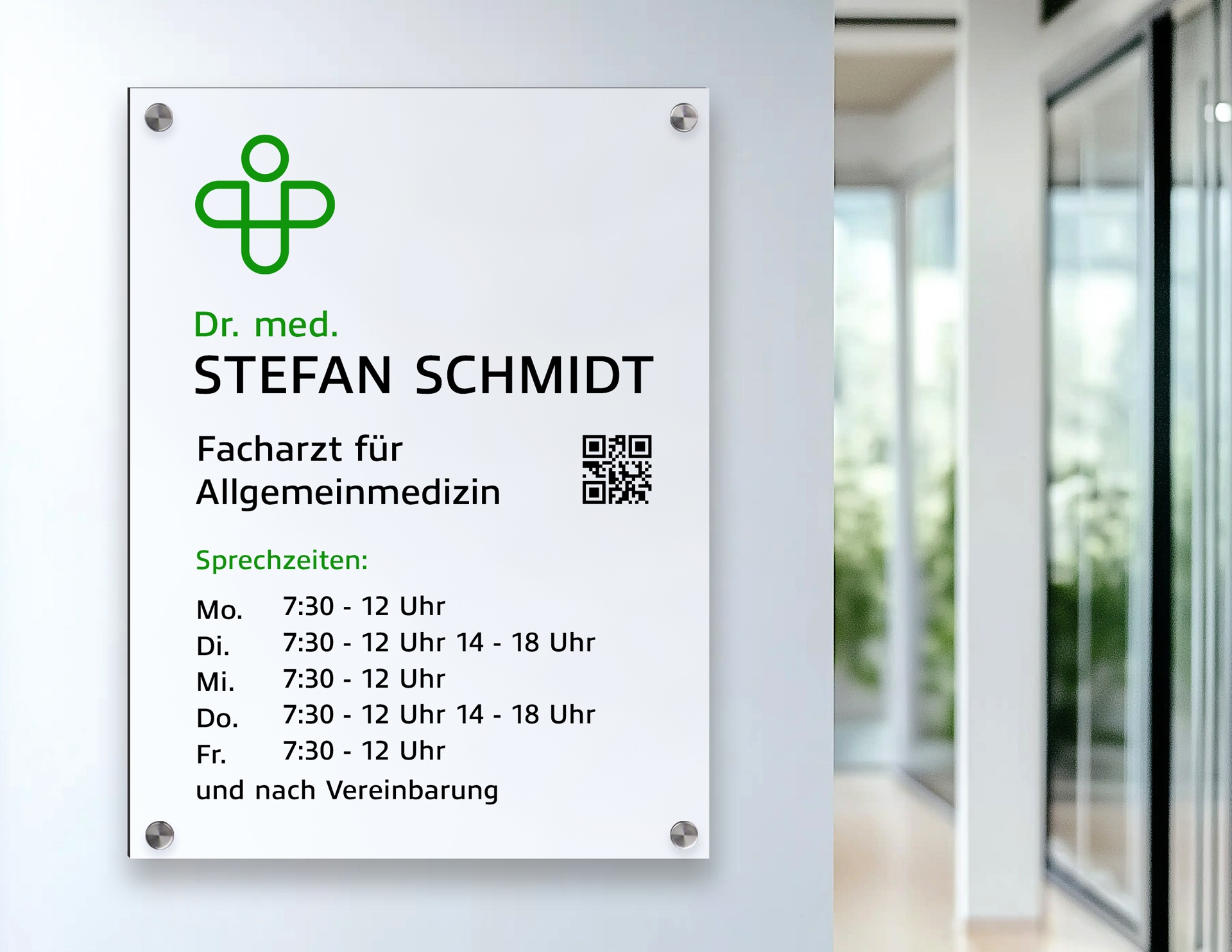 Ob für Orientierung, Corporate Design oder einen souveränen ersten Eindruck – Dein Praxis-Schild aus Alu-Dibond ist eine starke, langlebige Lösung für jede medizinische Einrichtung.