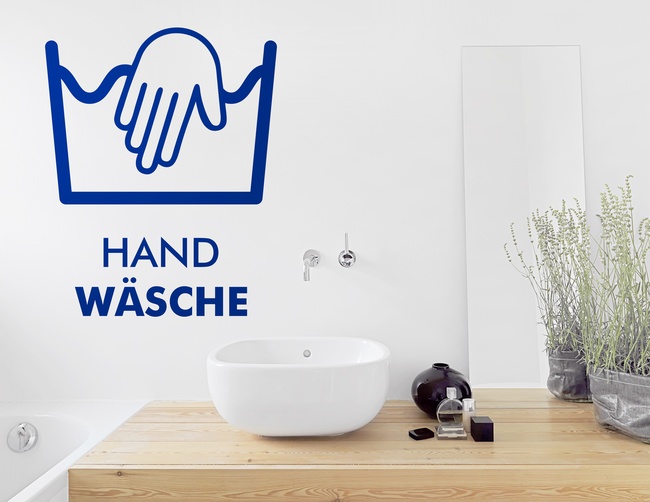 Unser Wandtattoo „Handwäsche“ kommt mit einer tollen Doppelbedeutung daher. Einerseits steht das Symbol für die klassische Waschanleitung in Kleidung und bezieht sich auf deren Pflegeempfehlung — das macht es zum idealen Wanddesign für die Waschküche. Andererseits jedoch erinnert es den Betrachter daran, sich die Hände waschen zu müssen und wird so ebenfalls zu einer tollen Dekoration im Badezimmer. Egal wo man es auch anbringen möchte, durch seine kontraststarke Umsetzung und das puristische Design sind alle Blicke darauf garantiert. Es sticht an der Wand hervor und begeistert mit seiner Leichtigkeit.