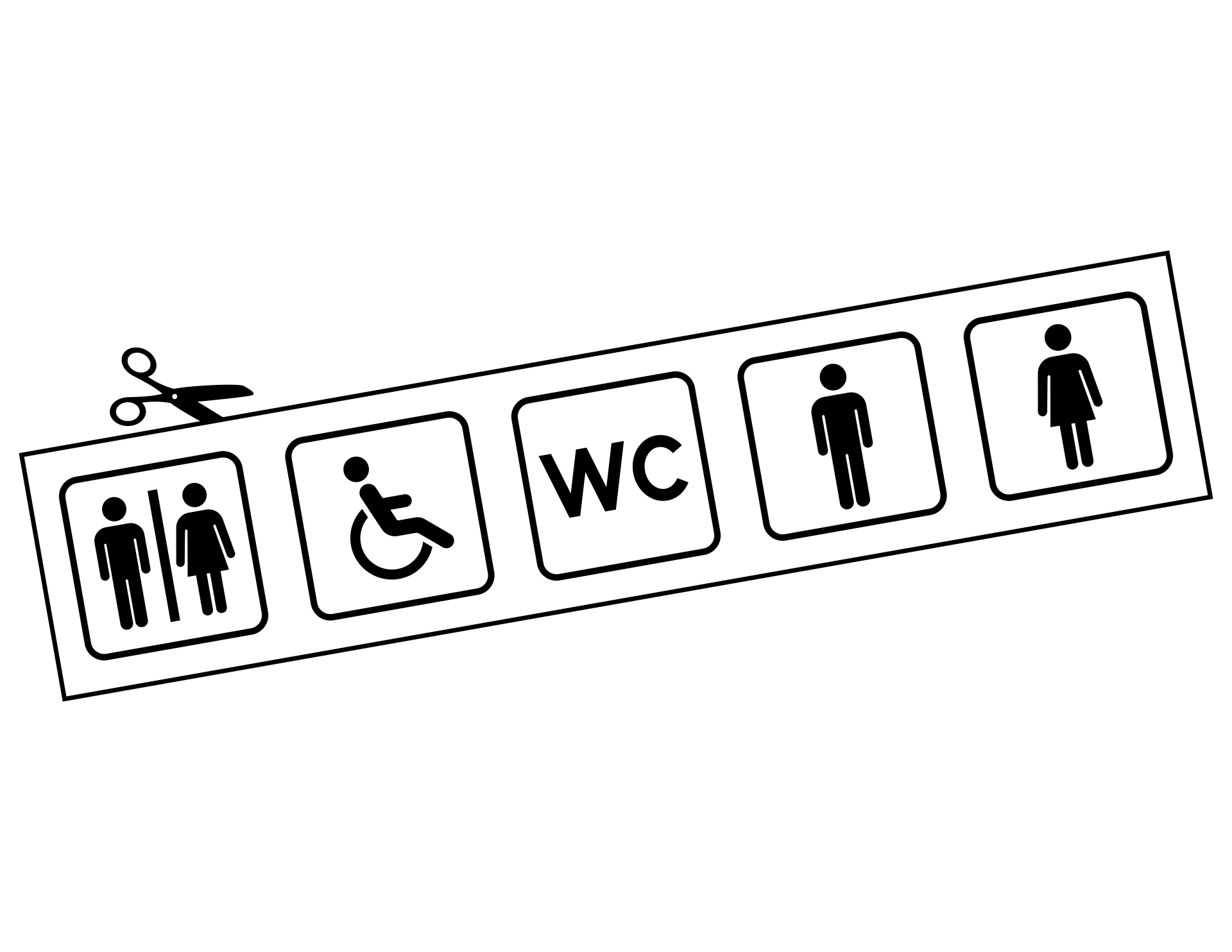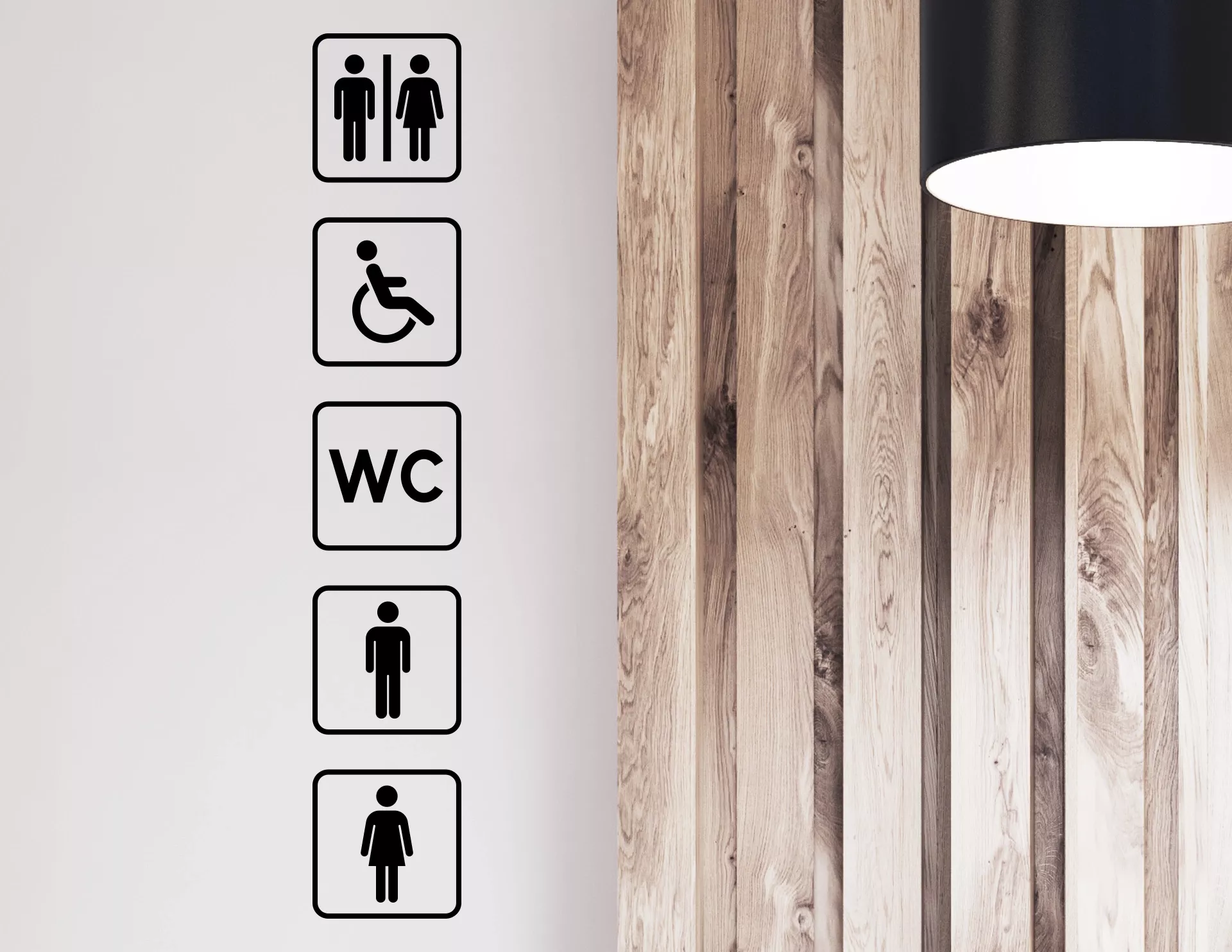 Mit dem Wandtattoo "WC Zeichen Lambert" mit fünf klassischen und leicht verständlichen Toiletten-Symbolen, finden Gäste, Kunden und Mitarbeiten ganz wortlos den richtigen Weg zum stillen Örtchen.