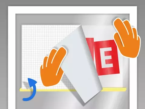 Aufkleber wieder nach unten umlegen und mit etwas Abstand straff über den Untergrund halten.