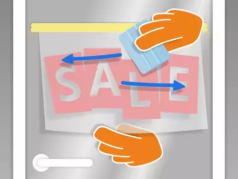 Bitte ziehe für das Aufbringen größerer Aufkleber eine zweite Person als Hilfe hinzu. Die Umgebungstemperatur sollte während des Verklebens nicht unter 10 Grad Celsius liegen.