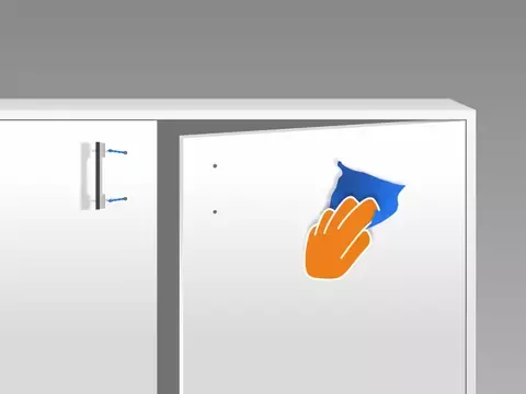 Hervorstehende Kleinteile (Türgriffe etc.) abbauen. Türen können zur Erleichterung der Verklebearbeiten ggf. ausgehangen werden.