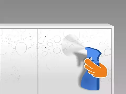 Jetzt die Möbelfläche mit dem Wasser-Spülmittel-Gemisch gleichmäßig besprühen.