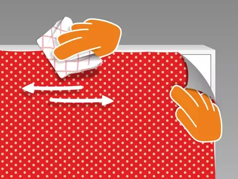 Diese Anleitung ist nur zur Verklebung auf nass abwischbaren Untergründen gedacht. Bitte ziehe für das Aufbringen größerer Flächen gegebenenfalls eine zweite Person als Hilfe hinzu.