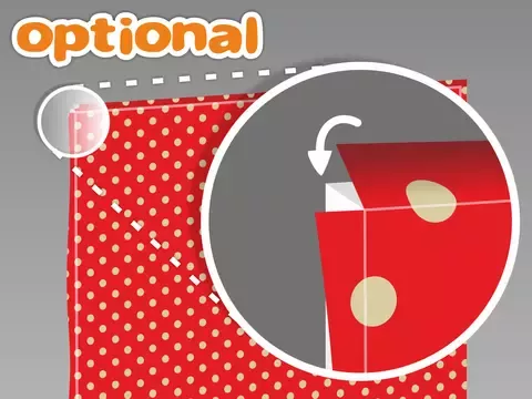 Optional zu Schritt 6 können die überstehenden Folienränder auch umgelegt werden. Schneide die Folie an den Ecken so ein wie abgebildet. Wichtig: