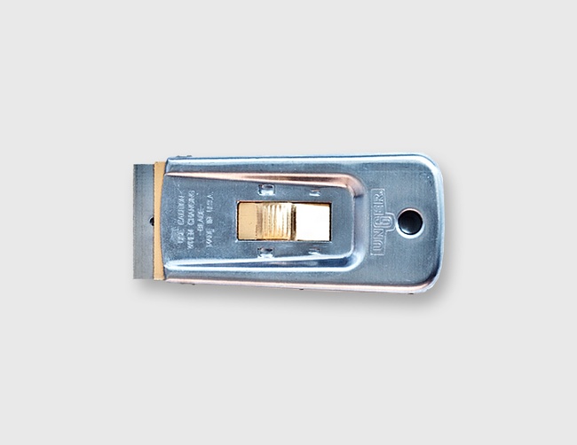 Zum Reinigen Deiner Glasscheiben: Unser Glashobel aus Metall. Entfernt grobe Verschmutzungen sowie Farb- und Kleberreste im Handumdrehen.
