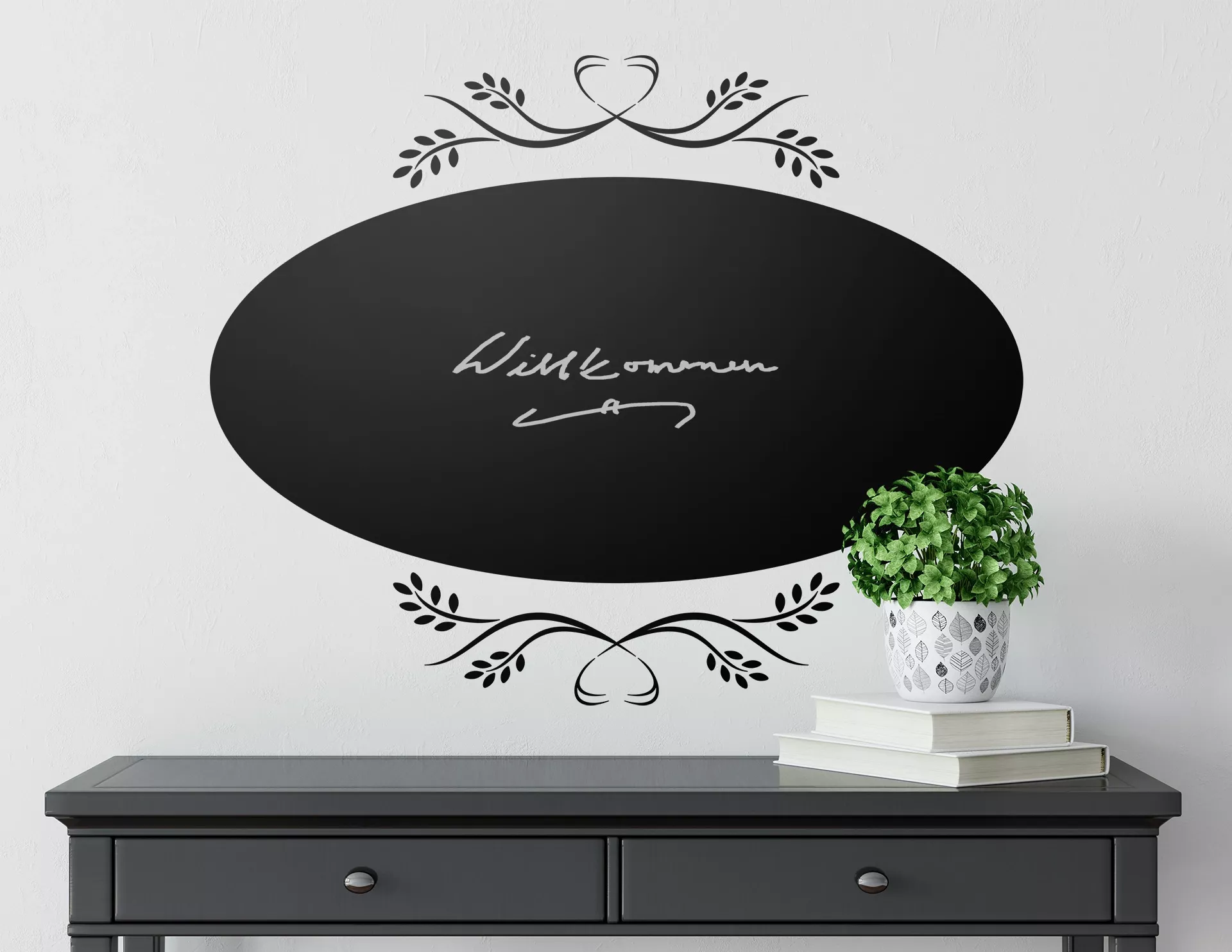 In ein florales Muster aus zarten Zweigen eingefasst, ist die Tafelfolie "Floral oval" ein optischer Genuss. Sie lässt sich sowohl im Querformat wie auch im Hochformat anbringen.