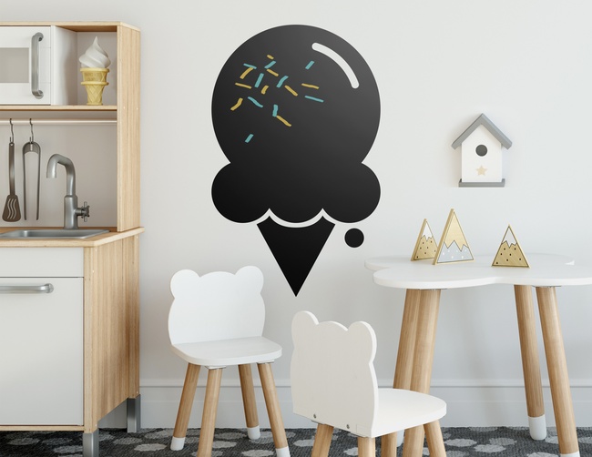 Für die Eisdiele, die Küchenwand oder das Kinderzimmer, was Süßes geht immer! Mit ausgestanztem Glanzpunkt und kleinem Topfen. Schnell montiert und immer wieder zu beschreiben.