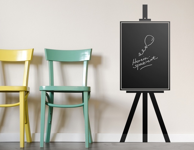 Werde kreativ, beim Beschreiben und Bemalen der Tafelfolie "Staffelei hoch". Ein Design das viel Freiraum lässt für temporäre Gemälde, Bilder und Skizzen.