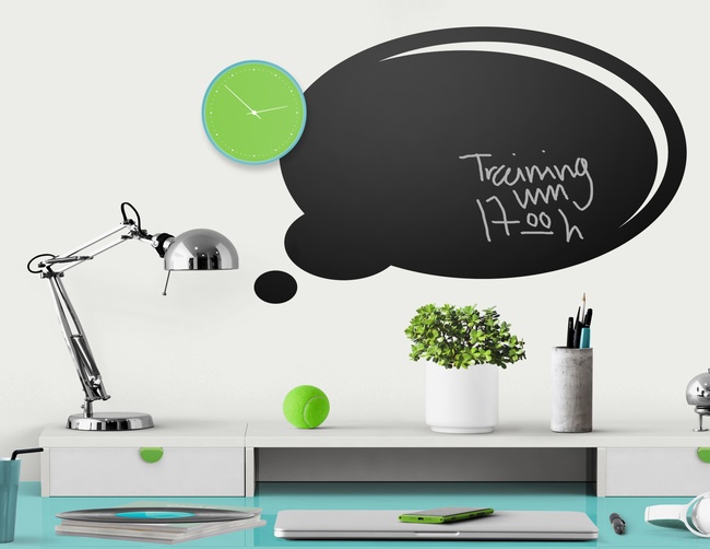 „Thought Bubble“ kann eindeutig mehr als nur cool auszusehen: wiederbeschreibbare Klebefolie, schnell montiert, leicht zu reinigen, in den Farben Grün und Schwarz.