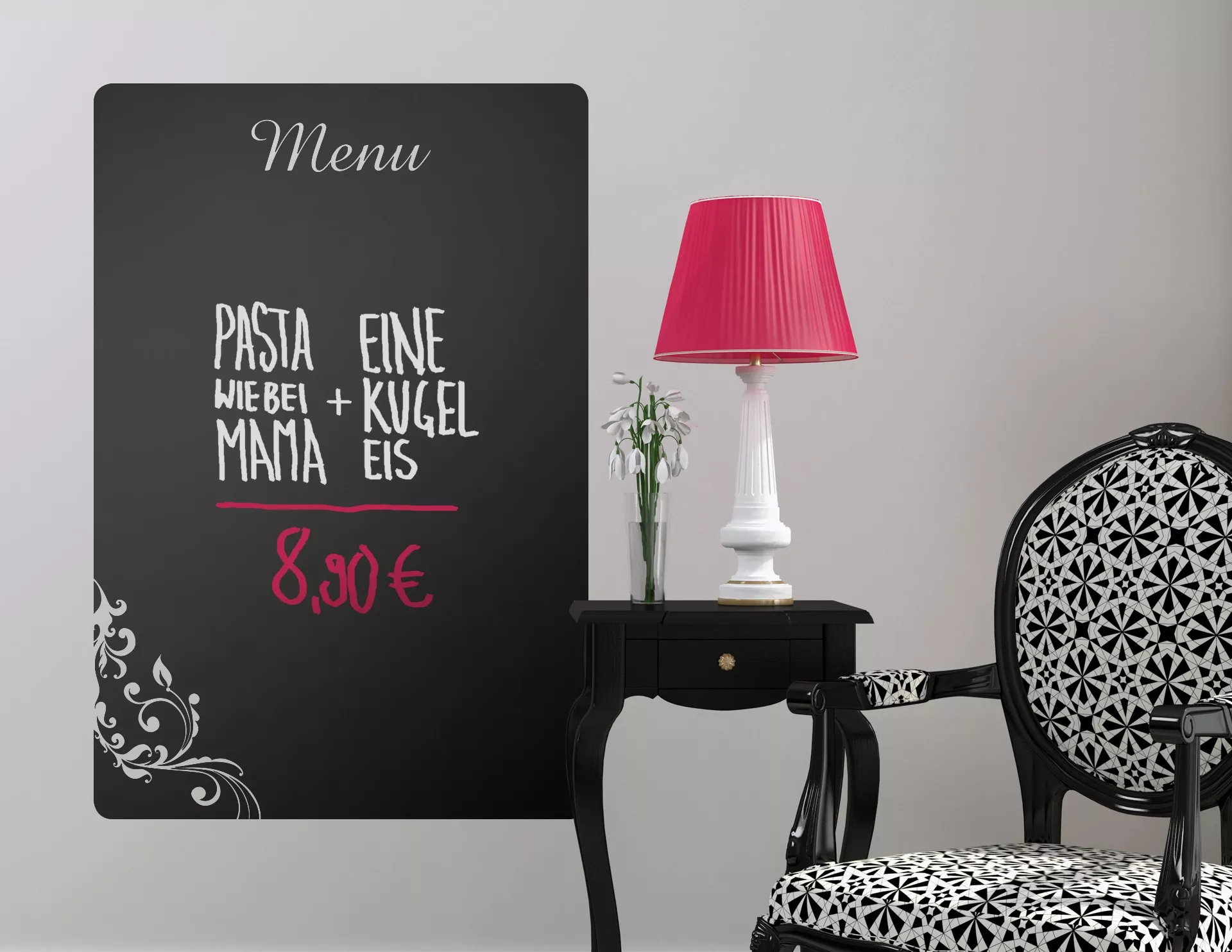 Auf dieser Tafelfolie kommen Tagesgerichte und Angebote besonders gut zur Geltung. Kinderleicht anzubringen, ganz ohne Nägel. Natürlich auch für Deine 4 Wände zuhause!