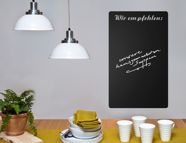 Unsere Tafelfolien eignen sich ideal zur Dekoration von Wänden, Türen, Möbeln und allen glatten Flächen. Die Folien lassen sich mit Kreide beschriften und sind nass abwischbar. Eine besonders originelle und kreative Gestaltungsidee für jeden Raum!