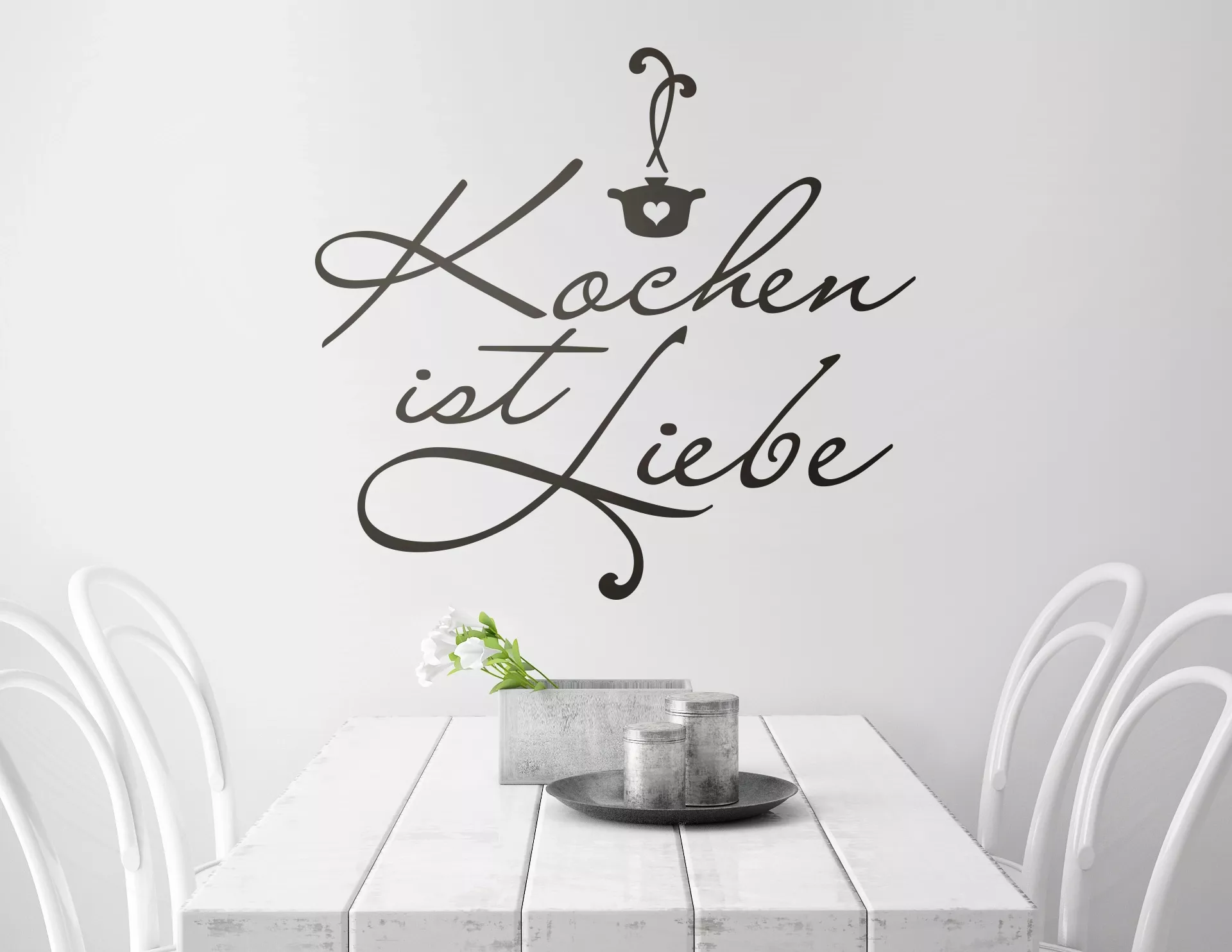 Wandtattoo „Kochen ist Liebe“: Die Geschmackvolle Wanddekoration für alle die das Kochen lieben und mit Liebe kochen. Verschönert Wände, Fliesen und alle glatten Oberflächen im Handumdrehen. Ein Design nach Deinem Geschmack? Bestimme Größe und Farbe dieses Motivs ganz individuell.