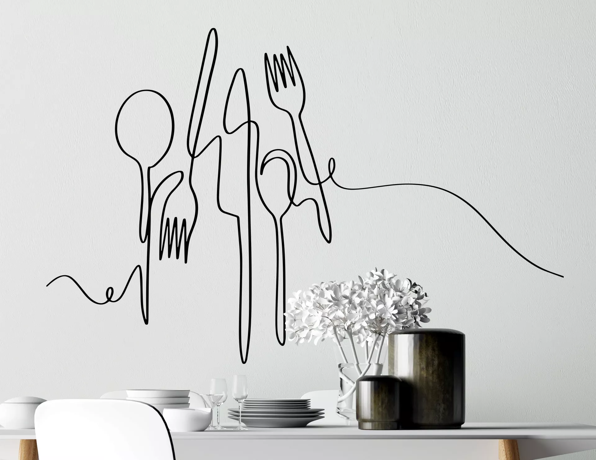 Wandtattoo "One Line Art – Besteck mit Pep": Ein echter Kunst-Aufkleber mit einem Besteck-Set aus nur einer einzigen Linie gestaltet – eben mal was anderes.