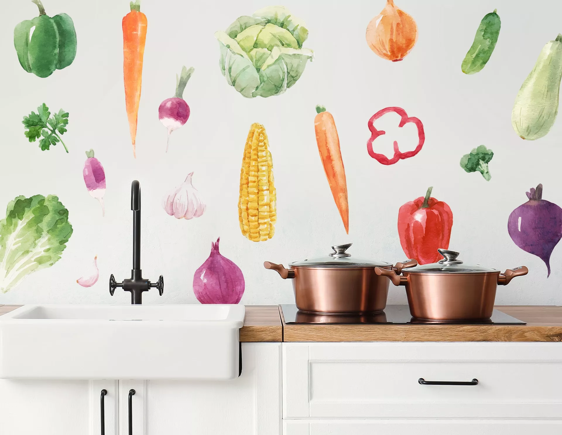 Junges Gemüse: Farbenfrohe Küchendekoration, nicht nur für Veggies! Unser Wandtattoo Garten-Gemüse Aquarell ist handgezeichnet und verleiht Wänden & Möbeln den extra Frische-Kick .