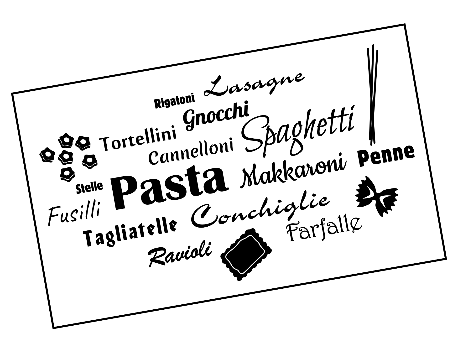 Wandtattoo „Wortwolke Pasta“ für Pasta-Fans