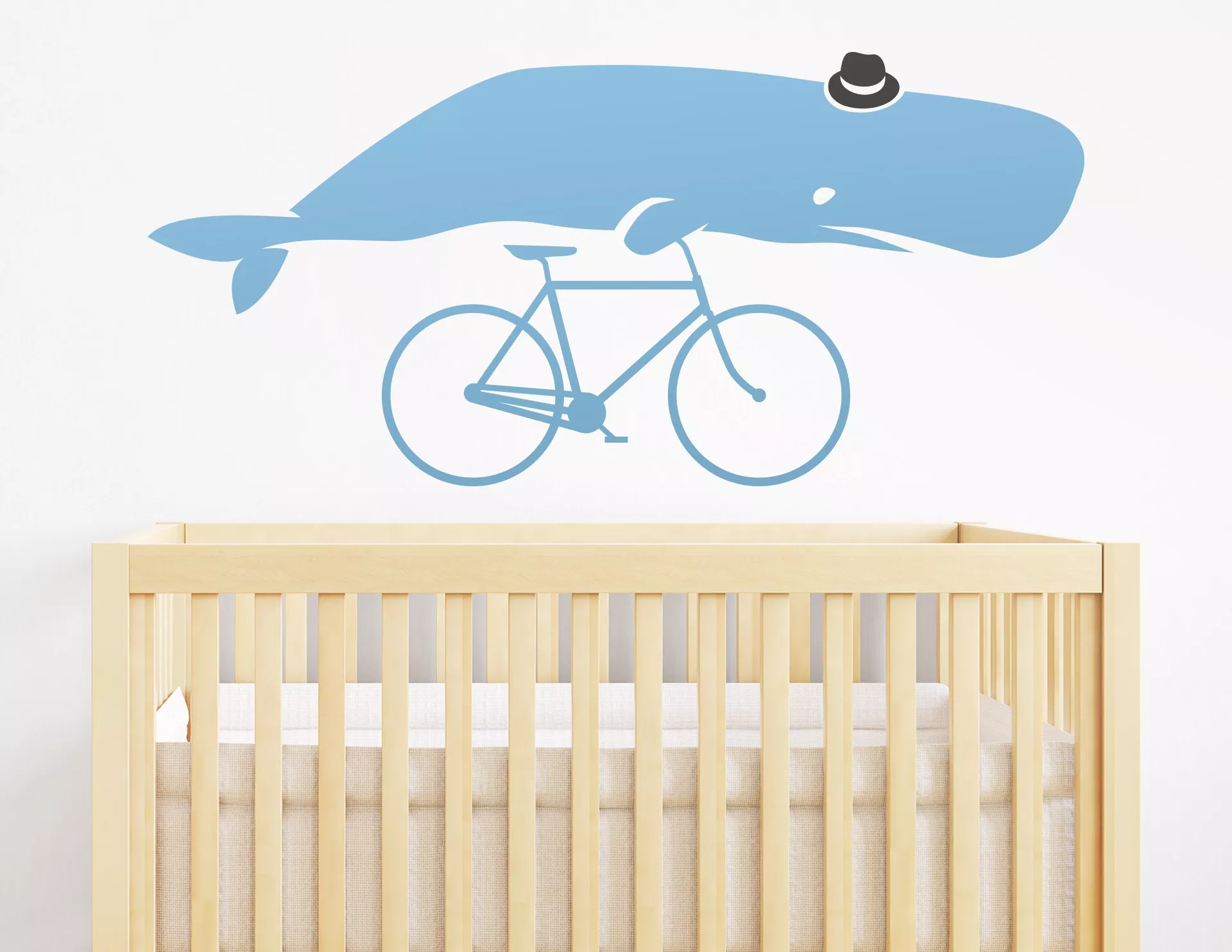 Moby, der kleine Pottwal, will auf und davon. Im Meer ist es ihm zu langweilig geworden, deshalb macht er sich nun auf zu neuen Abenteuern, an Land! Das Fahrrad hat er sich von seinem Freund Alexander dem Bären geborgt, genauso wie den kleinen schwarzen Filzhut... Wie es weitergeht? Wir wissen es nicht genau, denn die Reise hat gerade erst begonnen. Aber sicher wird euch Moby davon berichten! Mobile Moby, das Wandtattoo für Kinder, kannst Du mit Wunschmaß und in Deinen Wunschfarben bestellen.