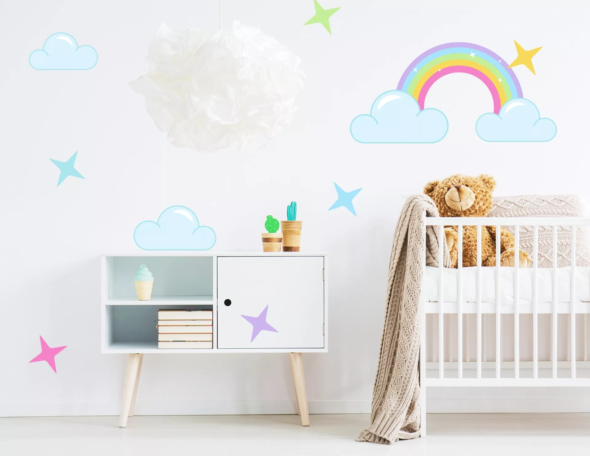 Das Wandtattoo „Wolkenzauber“ bringt den Himmel in Deine Wohnung. Süße Wölkchen und magischen Sterne setzen den funkelnden Regenbogen gekonnt in Szene. Wenn Du Dich also schon immer wie im Himmel fühlen wolltest, ist dies die ideale Wanddekoration für Dein Zuhause.