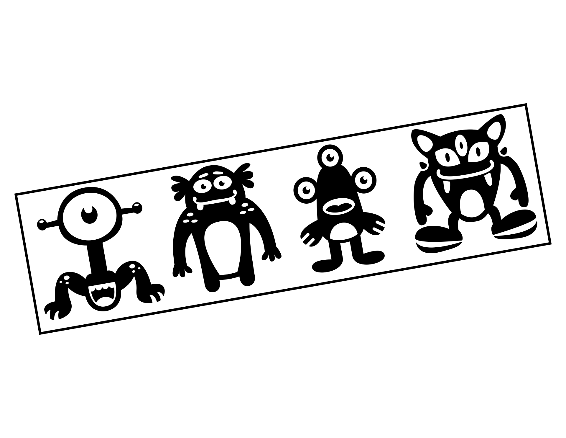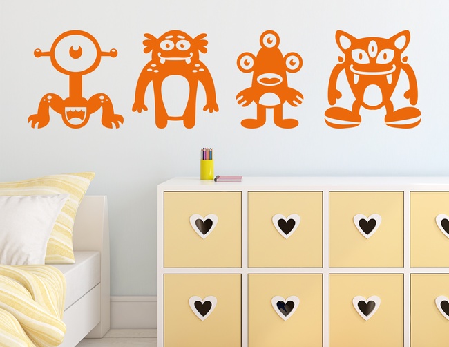 Das ist eine Gang wie sie im Buche steht, die Monster Buddys haben es faustdick hinter den Ohren, sofern sie welche haben. Das lustige Wandtattoo für Kinder.