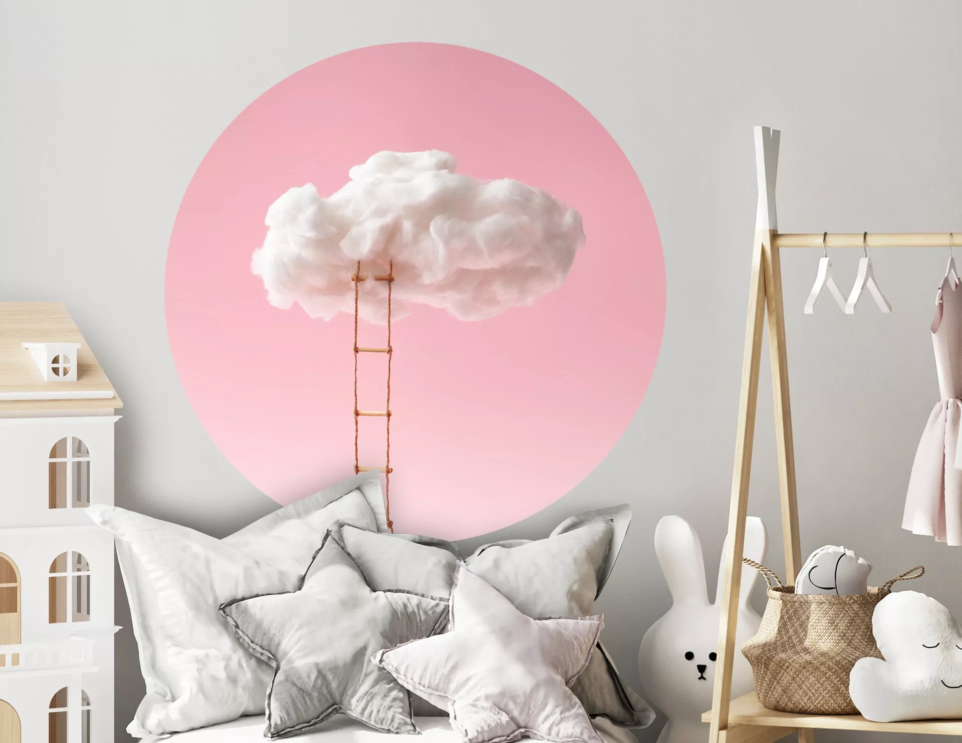 Wandtattoo "Rosa Wolkenleiter": Ein niedliches Design mit einer bauschig, weißen Watte-Wolke samt Leiter am rosa Himmel, welches die Fantasie beflügelt und der Auftakt vieler traumhafter Geschichten ist.