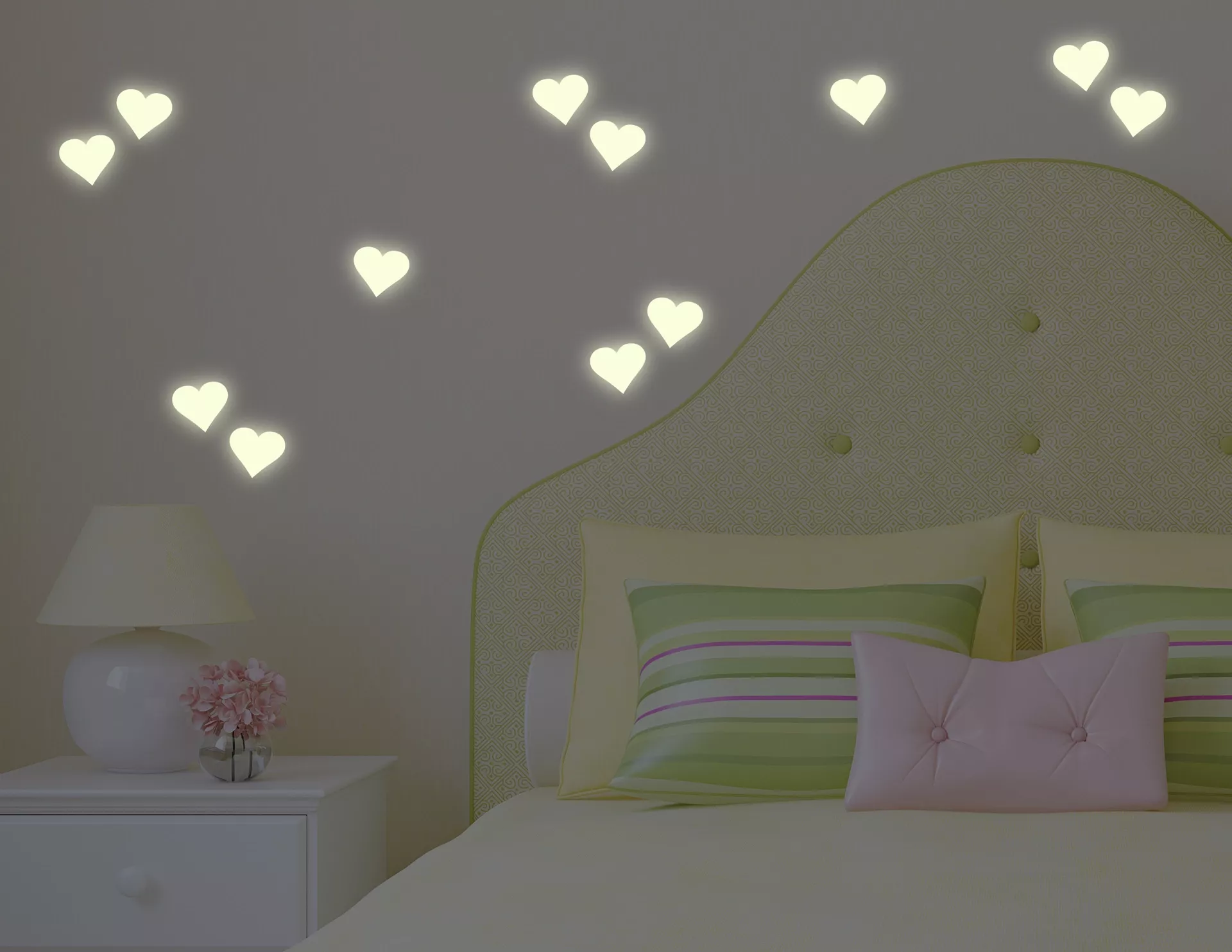 Das Wanddesign besteht aus einer speziellen fluoreszierenden Folie, die sich tagsüber immer wieder mit Licht auflädt. Somit wirst du lange Zeit viel Freude an Deinem Wandtattoo haben. „Heart Glow“ sorgt für die extra Portion Liebe im Schlaf- oder Kinderzimmer.