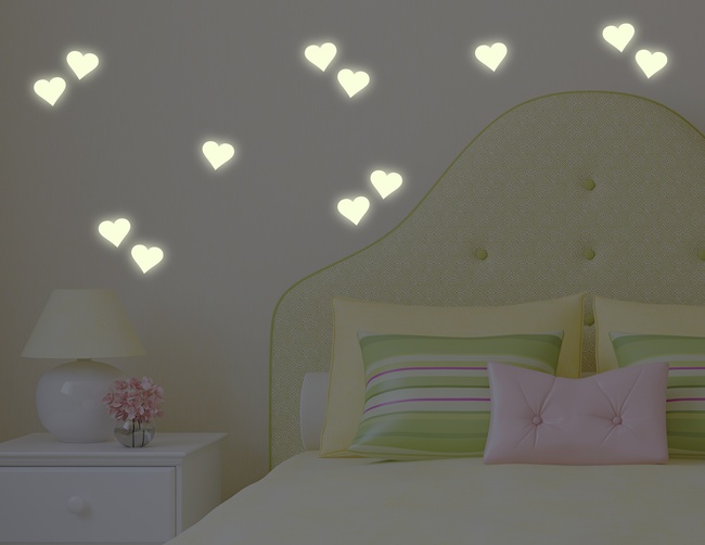 All you need is Love! Diese alte Weisheit bleibt zukünftig auch bei Nacht allgegenwärtig. Das Leuchtsticker-Wandtattoo „Heart Glow“ enthält 12 kleine Herzen aus Leuchtfolie. Somit erscheint Deine Wand tagsüber dezent und erstrahlt bei Dunkelheit im neuen Glanz.