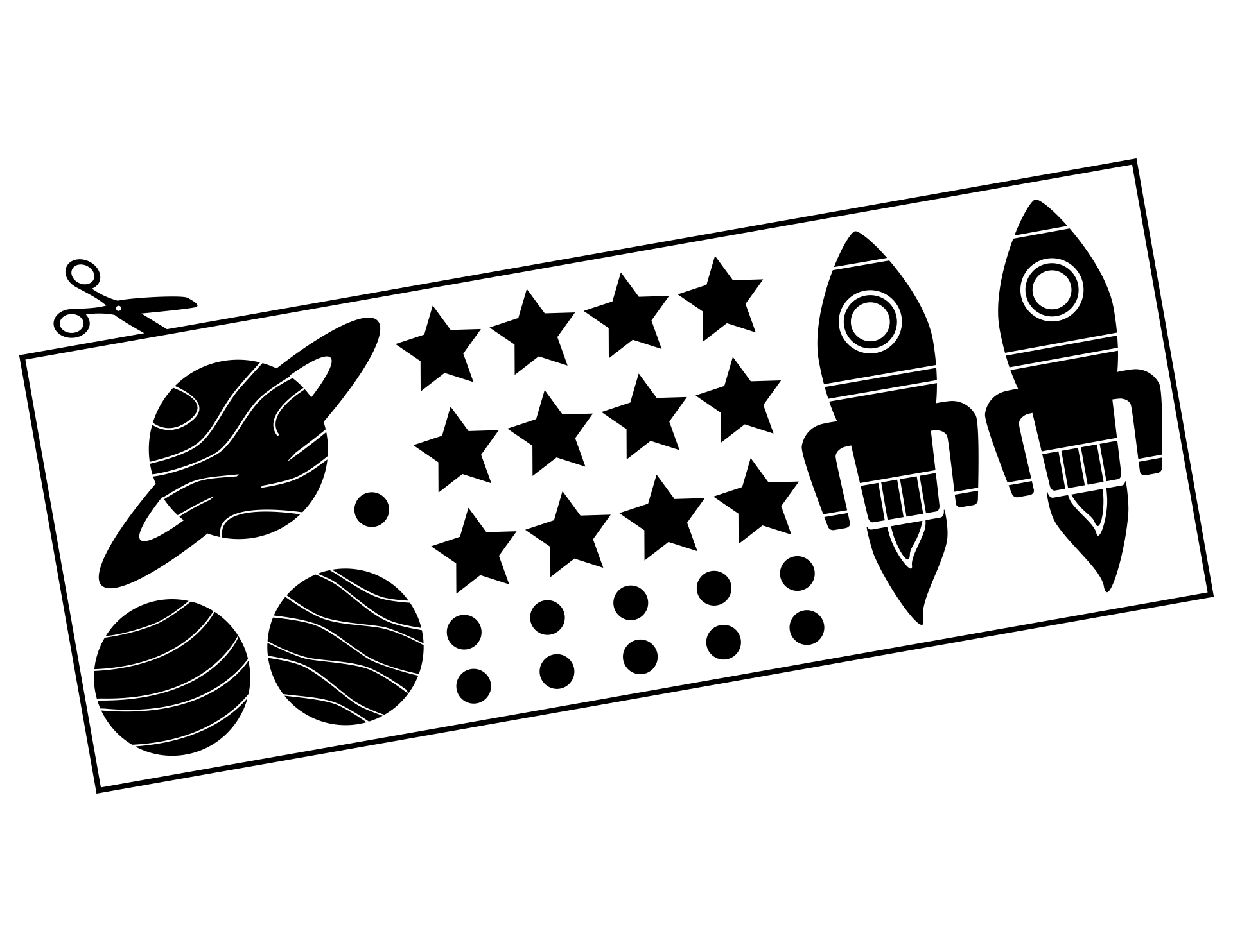 Nach den Sternen greifen war noch nie so einfach. Das Wanddesign „Leuchtende Planeten“ bringt das Weltall an die Wand und lässt es strahlen. Das Motiv wird aus fluoreszierender Folie gefertigt die bei Dunkelheit leuchtet. So wird aus jedem Kinderzimmer bei Nacht ein kreatives Universum. Das Wandtattoo „Leuchtende Planeten“ besteht aus zahlreichen großen und kleinen Sternen, drei Planeten und zwei Raketen. So kann der Weltraumausflug jeden Abend aufs Neue starten. Ein Himmelreich für kleine und große Kosmonauten.