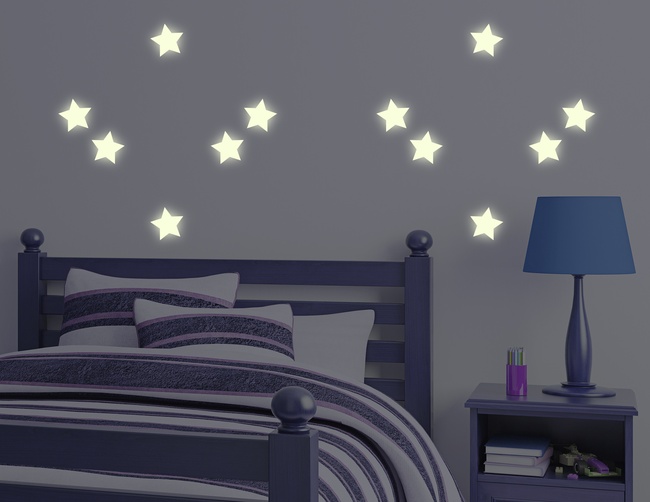 Süße Träume sind bei diesem Wanddesign garantiert: Das Motiv „Leuchtende Sterne“ besteht aus spezieller Leuchtfolie, die sich durch Tageslicht auflädt und bei Nacht wunderschön strahlt. Das Wandtattoo enthält 12 selbstleuchtende Sterne, die von Dir individuell im Raum platziert werden können. Damit wird aus Kinder- oder Schlafzimmer ein fantasievoller Sternenhimmel. Auf Dunkelheit warten hat noch nie so Spaß gemacht. Unser Tipp: Damit die fluoreszierende Folie nachts so richtig leuchten kann, lass tagsüber viel Licht an Dein Wandtattoo. Keywords