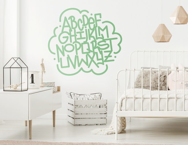 Früh übt sich, wer ein echter Buchstabier-Meister werden will! Unser Wandtattoo "Alphabet Wolke" erinnert an ein cooles Graffiti-Tag und ist ein echtes Highlight in jedem Kinderzimmer.